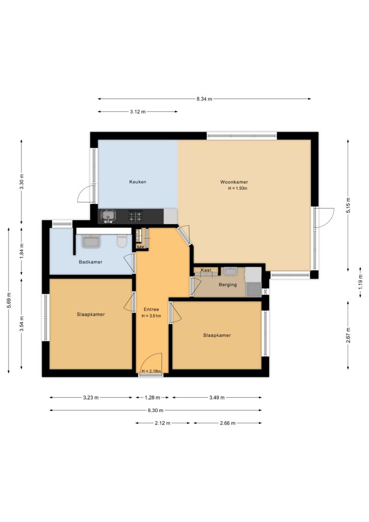 Entree met ruime hal en aansluitend een royale living met zit- en eethoek en inbouwkeuken voorzien van koelkast, elektrische heteluchtoven, gaskookplaat en afzuigkap. Verder zijn er twee slaapkamers, een badkamer voorzien van toilet, wastafel, designradiator en douchenis. Daarnaast is er nog een technische ruimte met aansluitmogelijkheden voor witgoed, uitstortgootsteen, opstelling cv ketel, werkkast en meterkast.