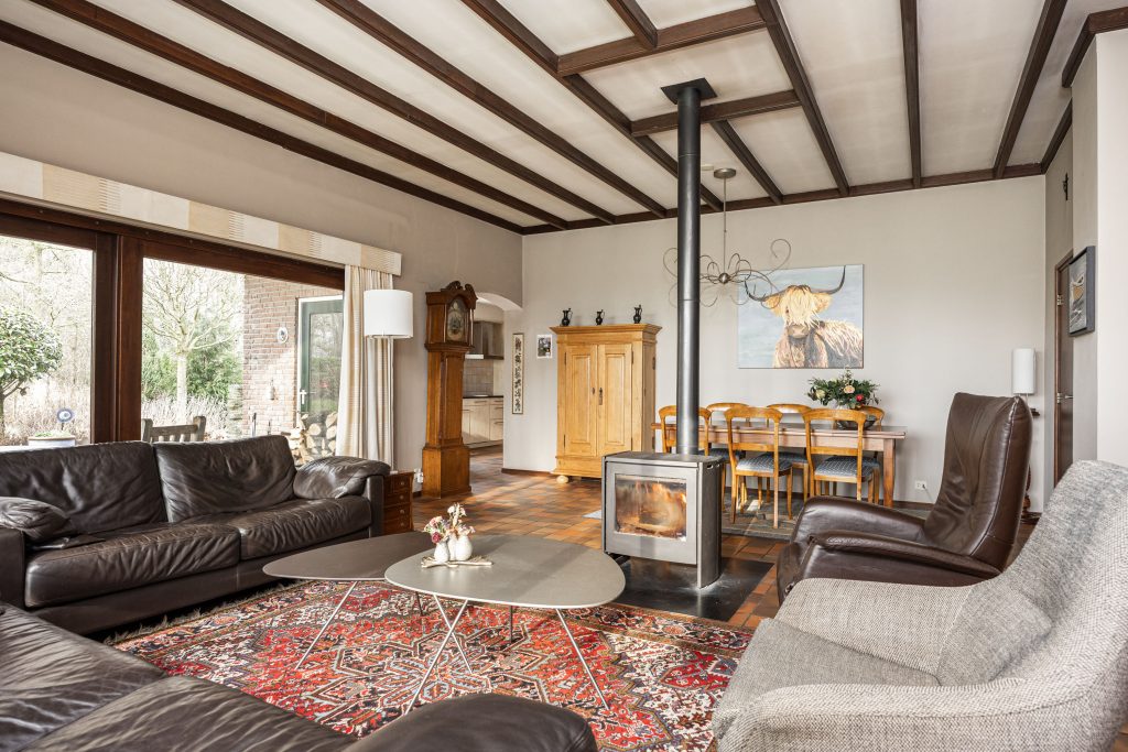 De woning heeft een charmante uitstraling met een karakteristiek dak en een speelse combinatie van hout en metselwerk. Grote raampartijen zorgen voor veel lichtinval en een fijn contact met de groene omgeving. In 1978 is het opgebouwd uit kwalitatief hoogwaardige materialen, hetgeen nog steeds zorgt voor een solide woongenot. En dankzij de aanwezige zonnepanelen voorbereid op energiezuinig wonen. Het landhuis is royaal van opzet met een gebruiksoppervlakte wonen van circa 225 m² en een inhoud van ongeveer 1.040 m³, wat zorgt voor volop leefruimte voor het hele gezin.