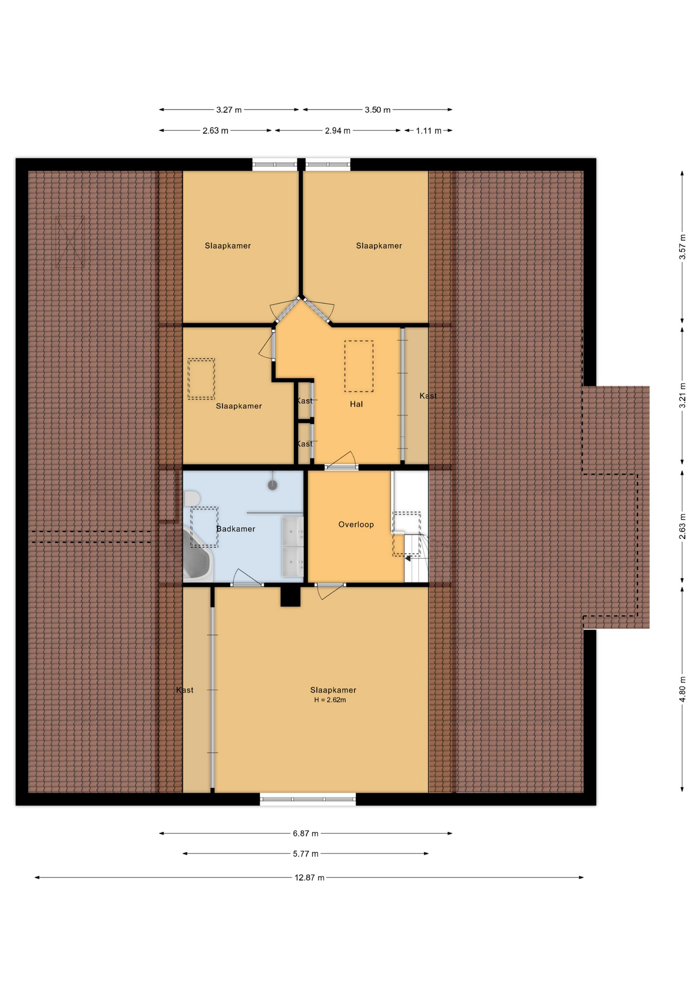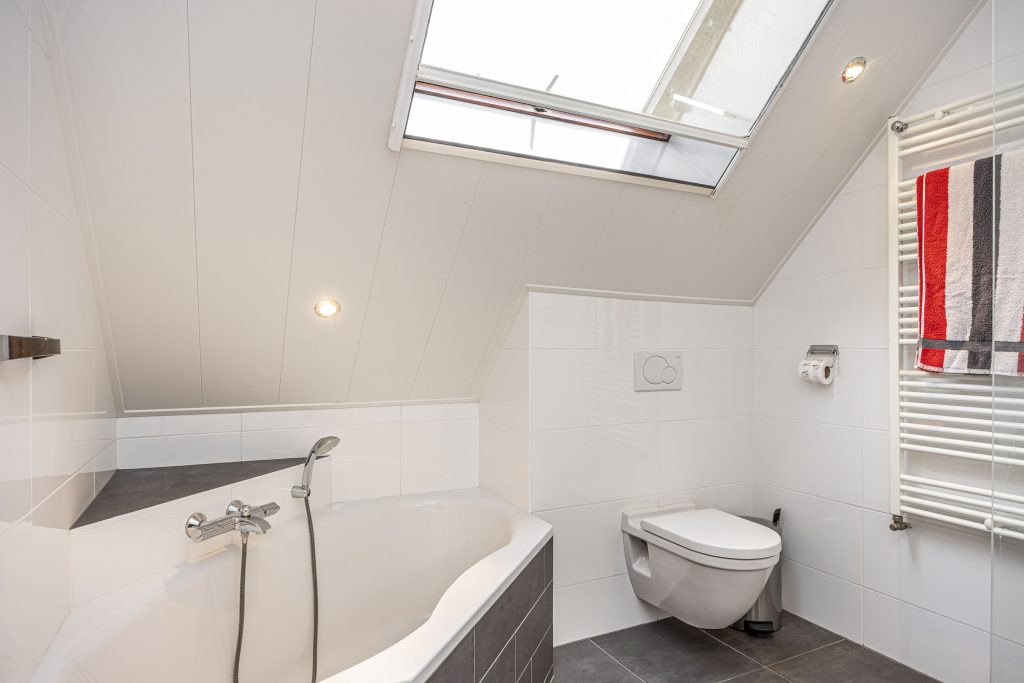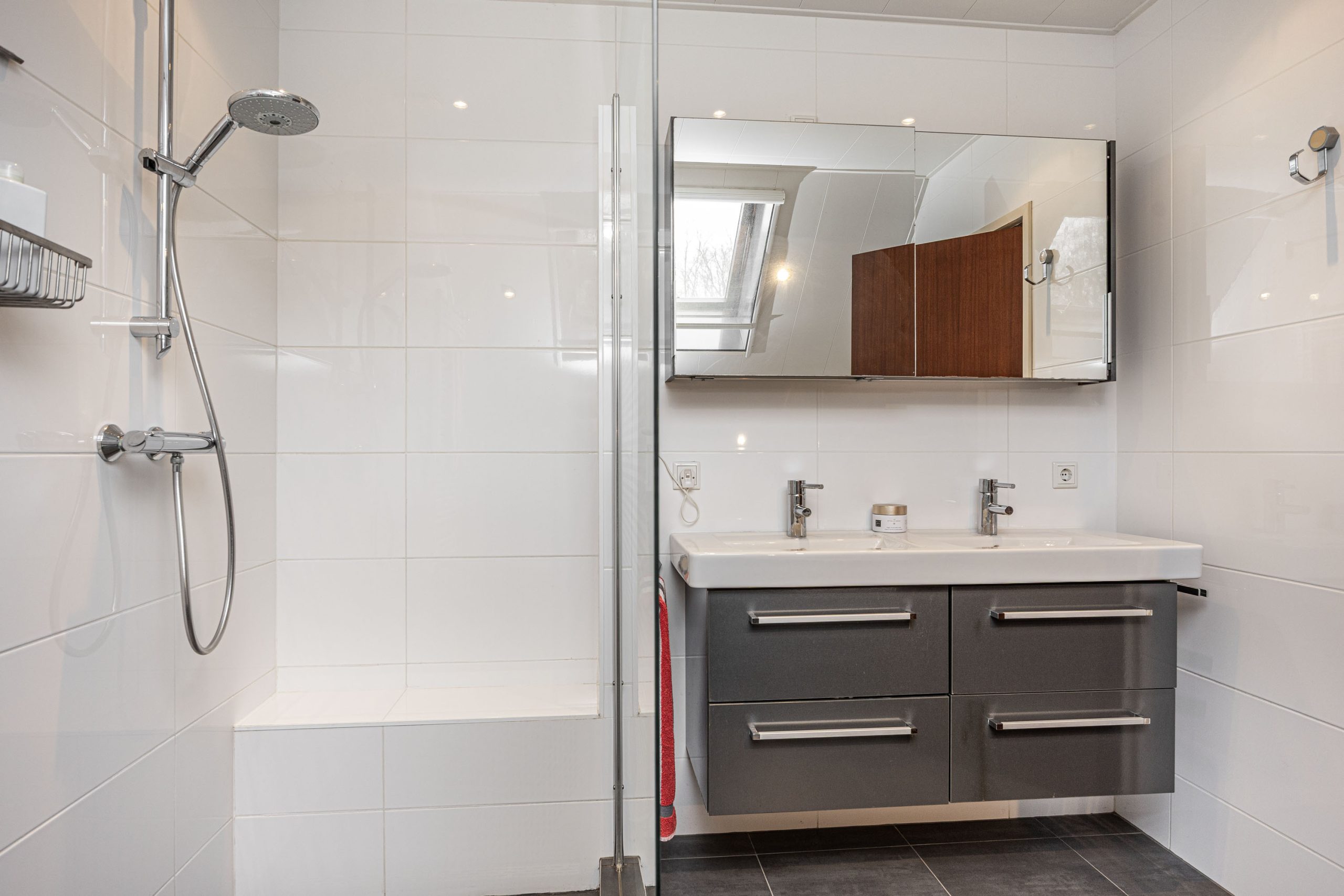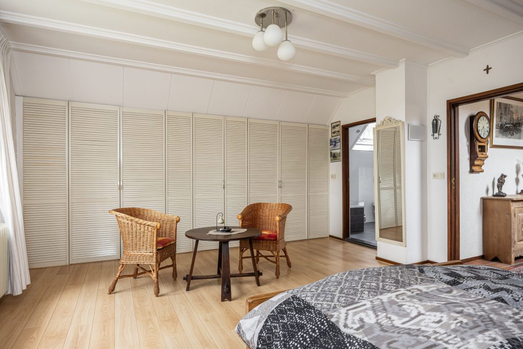 De overloop geeft toegang tot een ruimte met vaste kastenwand. De royale hoofdslaapkamer beschikt over een vaste kastenwand en een eigen badkamer met ligbad, douche, dubbele wastafel en toilet. Daarnaast zijn er nog drie ruime slaapkamers, ideaal voor gezin, gasten of hobby.